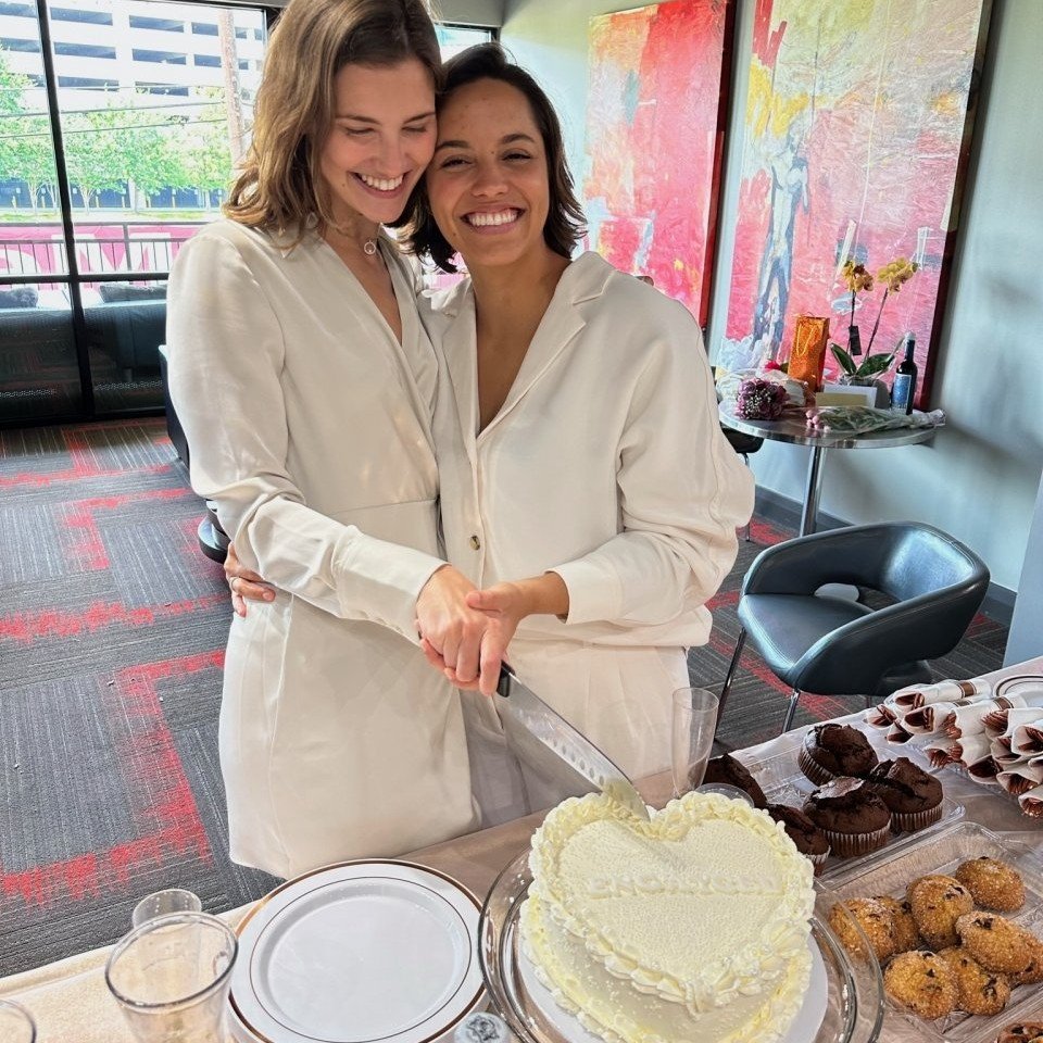 Em março de 2023, Juliana preparou a surpresa perfeita. Durante uma viagem a Los Angeles para visitar a irmã de Alicia e conhecer a Disneyland, ela convenceu Alicia de que fariam um passeio de helicóptero do Groupon — mas, na verdade, tinha algo muito maior planejado. Juliana fez o pedido de casamento! Entre risadas nervosas de Juliana e lágrimas felizes de Alicia (que duraram bons 30 minutos), elas celebraram o começo do “para sempre”.