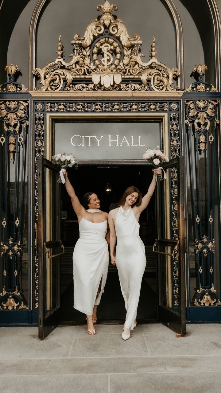 Pouco mais de um ano depois, as duas realizaram uma cerimônia civil íntima em San Francisco, Califórnia, ao lado da família mais próxima, para oficializar o casamento. Mesmo ainda sonhando com a grande celebração no Rio de Janeiro no ano seguinte, as mudanças no cenário político e a redução das proteções à comunidade LGBTQ+ fizeram com que Alicia e Juliana decidissem se casar antes do planejado. No dia 17 de abril de 2025, elas viveram uma cerimônia linda, cheia de amor, paz e alegria, cercadas pelos pais e irmãos — exatamente um ano antes da data do casamento que imaginaram.